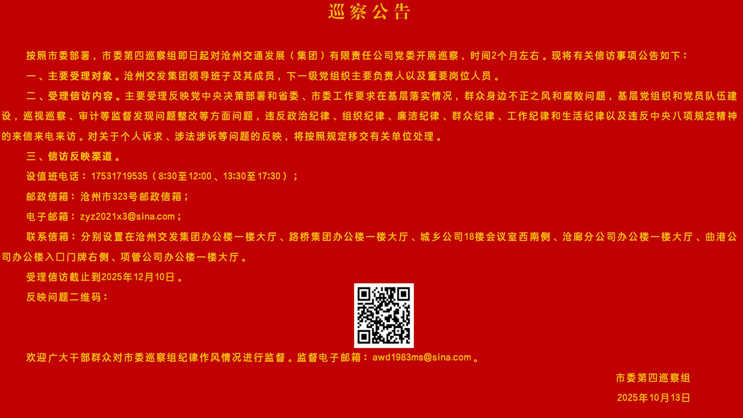 市委第四巡察組巡察 滄州交通發(fā)展(集團)有限責任公司黨委 工作動員會召開